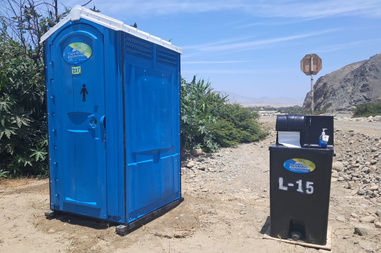 mercados, campamentos mineros y obras. Incluye la entrega, instalación, limpieza regular y reabastecimiento de suministros.
